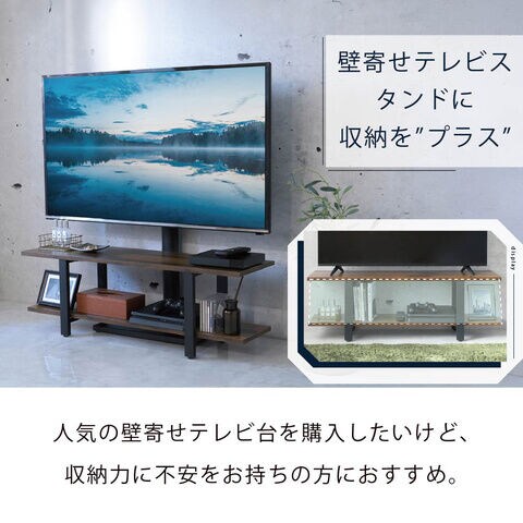 ◆収納棚付きで周辺機器もスッキリ整理できるラック付き壁寄せテレビ台。