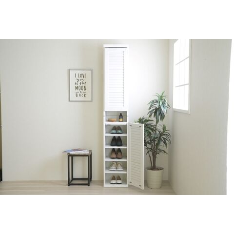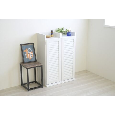 お部屋に合わせて横に並べても、縦積みでもお使いいただけるルーバーシューズボックスです。