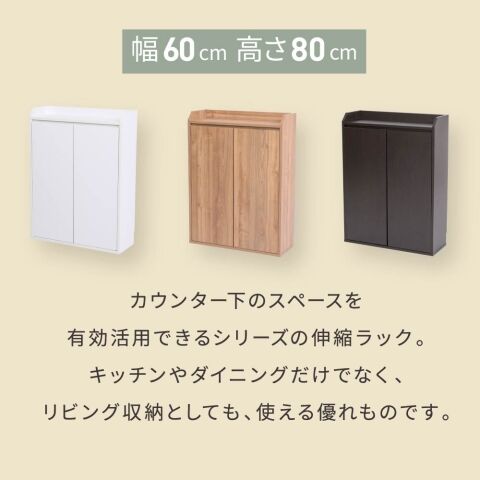◆カウンター下使用時には、高さに合わせて2種類の突っ張り棒が付属されているのでしっかり固定可能で薄型でも前倒れの心配もありません。