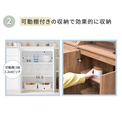 ◆カウンター下やリビングの窓下など、部屋のデッドスペースを有効利用できる家具シリーズ。収納場所に困る小物や雑貨のちょっとした収納が可能な扉付き収納。
