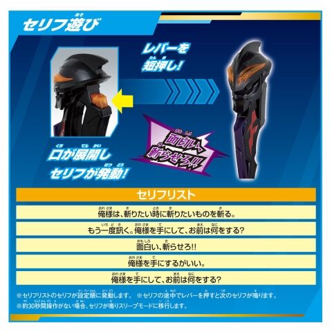 レバーを押すことでベリアロクの口が開閉しセリフが鳴る! トリガー操作で2種の剣撃音も発動!