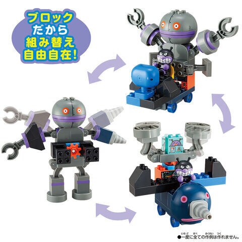 手足が動く大きなだだんだんや、転がし遊びも楽しいもぐりん、バイキンじょうやひみつきちなどが作れるブロックセット!