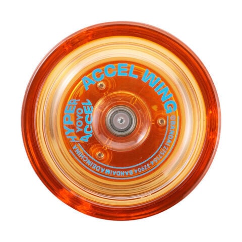 「ハイパーヨーヨーアクセル アクセルウィング-サンシャインフェニックス-」は、クリアオレンジのボディにフェニックスをイメージしたデザインがあしらわれたヨーヨーです。