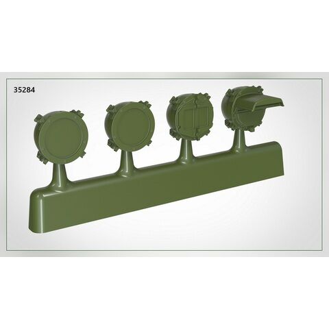 現用ソビエト/ロシア軍の各種車輌の車体や砲塔などに装備されている各種ライトを再現するディテールパーツセットです。