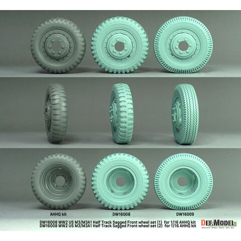 デフモデル 1/16 WWII アメリカ US M3/M3A1ハーフトラック用 前輪自重変形タイヤセット(1) 軍用タイプ(アンディーズホビーヘッドクォーターズ/タコム用) です。