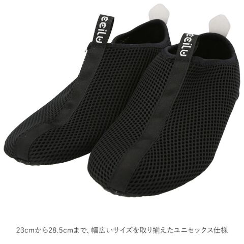 通気性・速乾性に優れた、きめ細やかなメッシュ素材を使用し、素足のままスッと履きやすい!