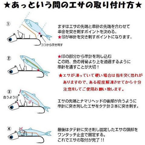 三点式固定システム(PAT.P)で エサ(キビナゴ・ドジョウなど)をシッカリ固定!