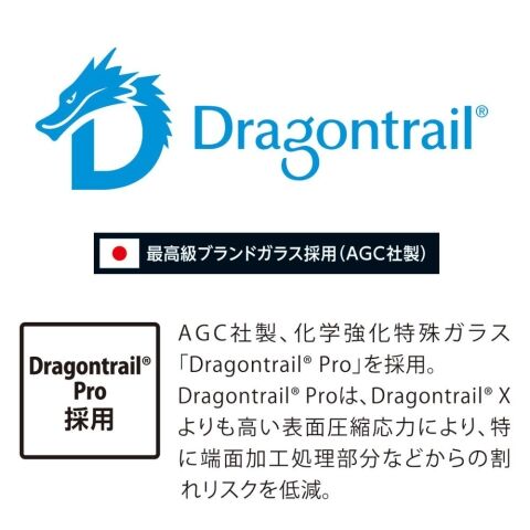 ◆「ULTRA HARD GLASS」は、AGC社製化学強化ガラスのトップグレード「Dragontrail Pro」の加工前の原板(厚み0.4mm)に対してそのまま硬化処理と表面処理を施しました。