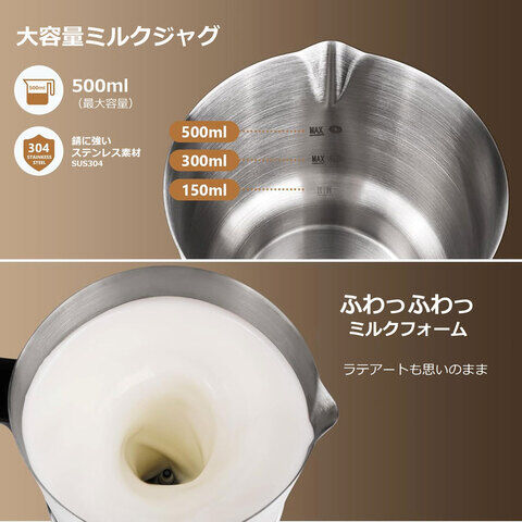 一度にフォームミルク最大300ml、ホットミルクなら最大500mlできます。