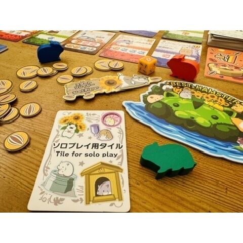 88×63ポーカーサイズカード:150枚以上 企業ボード:5枚 企業タイル:5枚 ハムスター木ゴマ:各5セット タネチップ:たくさん タネダイス:1個 説明書(日本語) ほか