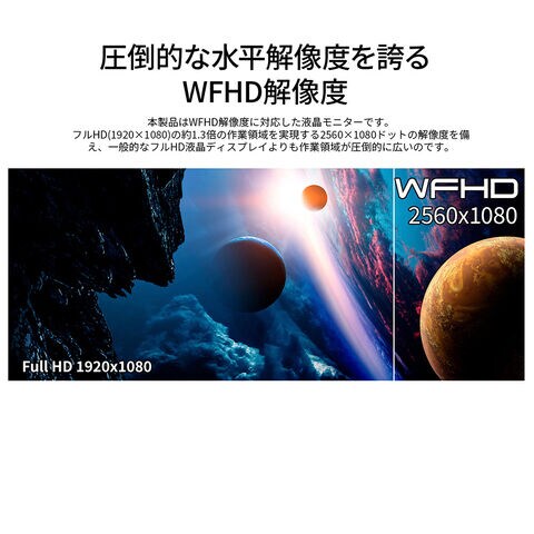 ワイドフルHD(2560×1080)解像度に対応したウルトラワイド液晶モニター