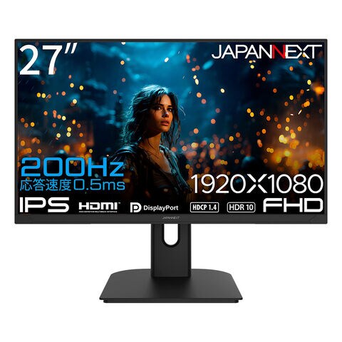 JAPANNEXT|ジャパンネクスト ゲーミング液晶ディスプレイ(27型/IPS(HIS)/フルHD 1920×1080/200Hz/3ms/HDR10/HDMI2.0/DP1.2/VESA)(ブラック) JN-IPS27G200F 【返品種別A】