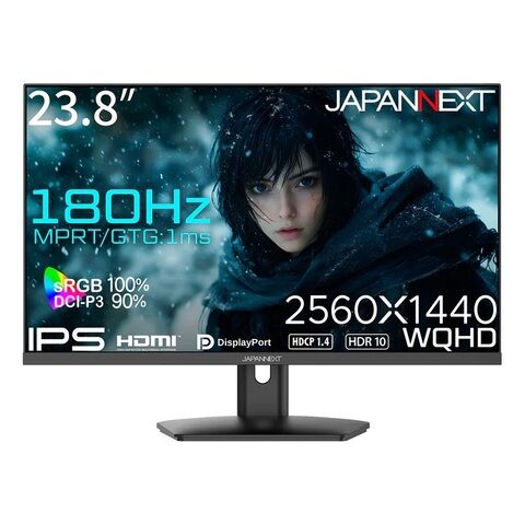 JAPANNEXT|ジャパンネクスト ゲーミング液晶ディスプレイ(23.8型/IPS/WQHD 2560×1440/180Hz/1ms/HDR10/HDMI2.0/DP1.2/VESA/2年保証)(ブラック) JN-IPS238G180Q 【返品種別A】