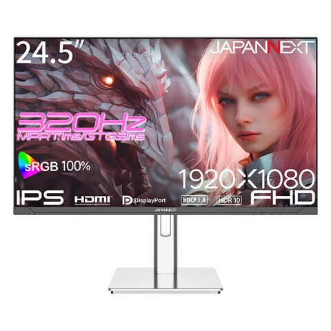 JAPANNEXT|ジャパンネクスト ゲーミング液晶ディスプレイ(24.5型/IPS(FFS)/FullHD 1920×1080/320Hz/1ms/HDR10/HDMI2.0/DP1.2/VESA/2年保証)(ホワイト) 昇降式 多機能スタンド JN-IPS245G320F-HSP 【返品種別A】
