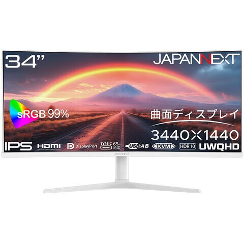 JAPANNEXT|ジャパンネクスト 液晶ディスプレイ(34型/曲面型/IPS/UWQHD 3440×1440/60Hz/5ms/HDR10/HDMI2.0/DP1.2/VESA/PIP・PBP対応)(ホワイト) JN-IPS34Q-HC6-W 【返品種別A】