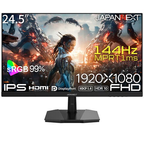 JAPANNEXT|ジャパンネクスト ゲーミング液晶ディスプレイ(24.5型/IPS(FFS)/FullHD 1920×1080/144Hz/1ms/HDR10/HDMI2.0/DP1.4/VESA/2年保証)(ブラック) JN-IPS245G144F 【返品種別A】