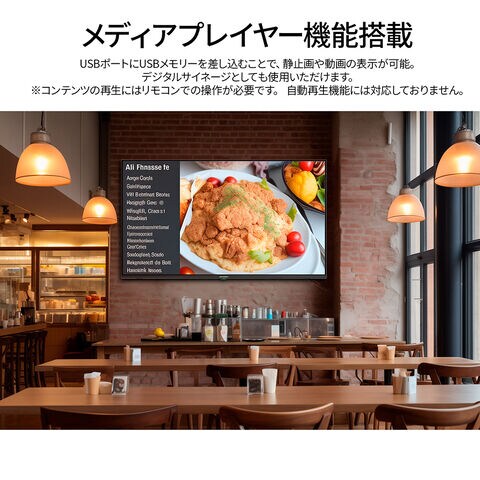 パソコンや映像機器がなくても、USBに保存した画像や映像を表示することができ、デジタルサイネージとしてもご利用頂けます。