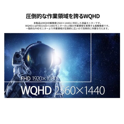 フル HD (1920×1080)より+78 %も高精細な WQHD(2560×1440)を搭載。