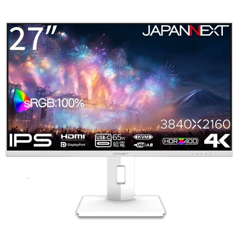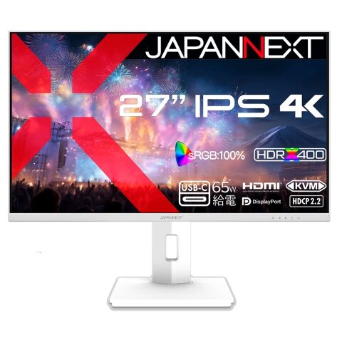 JAPANNEXT|ジャパンネクスト 液晶ディスプレイ(27型/IPS(ADS)/4K UHD 3840×2160/60Hz/14ms/HDR400/HDMI2.0/DP1.2/USB Type-C/VESA/2年保証)(ホワイト) JN-IPS27U2-HSPC6-W 【返品種別A】のレビュー