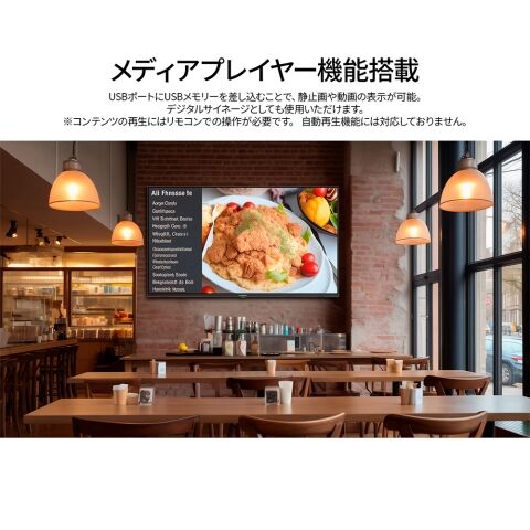 さらに、USBポートを搭載していますので、デジタルサイネージとしてもご利用できます(屋内使用のみ)。