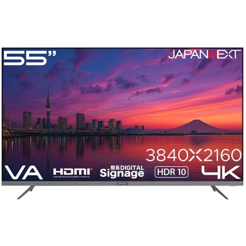 JAPANNEXT|ジャパンネクスト サイネージ液晶ディスプレイ(55型/VA/4K UHD 3840×2160/60Hz/8ms/HDR/HDMI2.0/VESA/2年保証)(ブラック) JN-V55U-M 【返品種別A】
