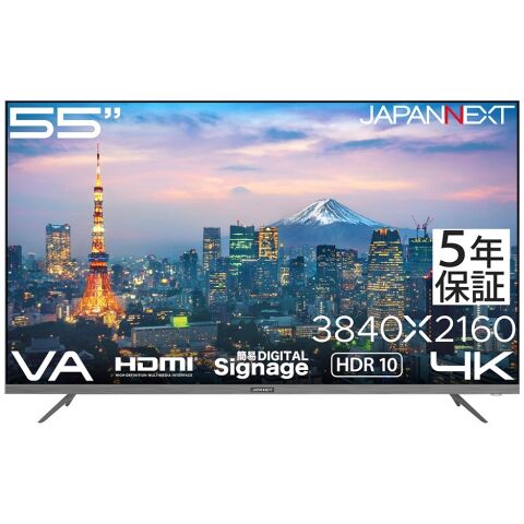 JAPANNEXT|ジャパンネクスト サイネージ液晶ディスプレイ(55型/VA/4K UHD 3840×2160/60Hz/8ms/HDR/HDMI2.0/VESA/5年保証)(ブラック) JN-V55U-M-H5 【返品種別A】
