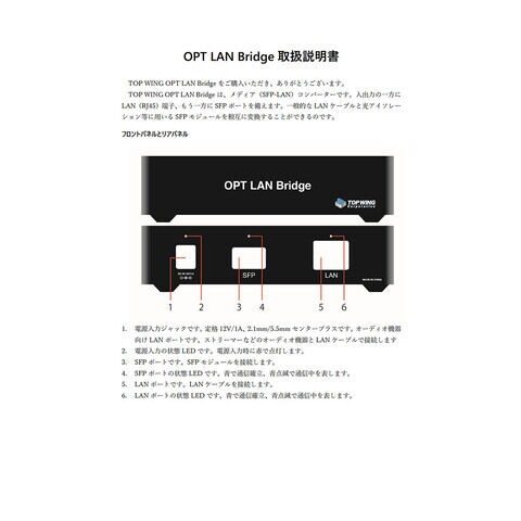 TOP WING OPT LAN Bridgeは、SFPとLANを相互変換する、いわゆる「メディアコンバーター」と呼ばれる製品です。