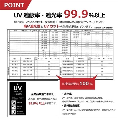 ◆ポリエステル生地の裏側にポリウレタン加工を施した一級遮光生地の親骨50cm遮光晴雨兼用日傘です。