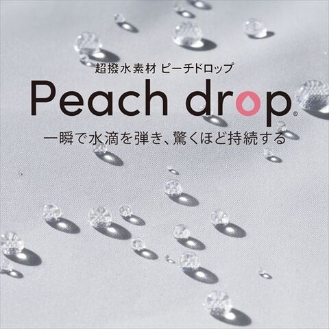 「Peach drop」は、水滴を弾く桃の皮(ピーチスキン)のように、生地の表面が微起毛になっており、雨が当たっても一瞬で水滴を弾く超はっ水素材です。