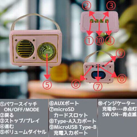 - 入力:AUX、MicroSDカードスロット、USB