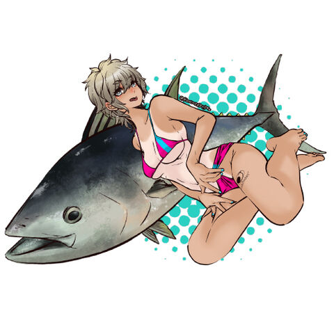 彼女の描くキュートなキャラクターと魚たちとの究極のコラボステッカー。