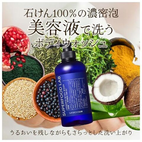 ※ スーパーフード:アリストテリアチレンシス果実エキス(保湿)、チャ葉エキス(保湿)、アサイヤシ果実エキス(保湿)、アルゲエキス(保湿)、ザクロ果皮エキス(保湿)、スピルリナプラテンシスエキス(保湿)、ウコン根エキス(保湿)、アロエベラ液汁(保湿)、ヤシ油(コンディショニング)、加水分解キノア種子(保湿)