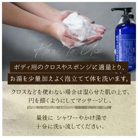 ※ スーパーフード:アリストテリアチレンシス果実エキス(保湿)、チャ葉エキス(保湿)、アサイヤシ果実エキス(保湿)、アルゲエキス(保湿)、ザクロ果皮エキス(保湿)、スピルリナプラテンシスエキス(保湿)、ウコン根エキス(保湿)、アロエベラ液汁(保湿)、ヤシ油(コンディショニング)、加水分解キノア種子(保湿)