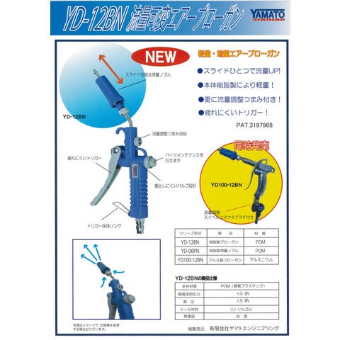 ヤマトエンジニアリング 流量可変エアーブローガン (アルミ製) YAMATO ENGINEERING YD100-12BN 【返品種別B】