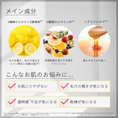 毛穴(※3)や透明感(※4)不足が気になるお悩み肌にビタミンを補給し、健やかに整えます。