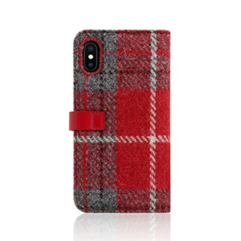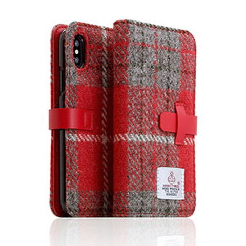SLG Design iPhone XS/X用 手帳型 HARRIS TWEED(レッド/グレー) SD10554I8 【返品種別A】