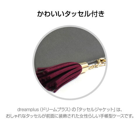 ◆dreamplus(ドリームプラス)の「タッセルジャケット」は、おしゃれなタッセルが前面に装飾された女性らしい手帳型ケースです。