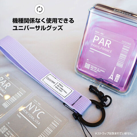 空港の手荷物タグを意識したデザインです。クリアやモノクロを基調としているので、どんなスマホやケースのデザインにも合わせることができます。