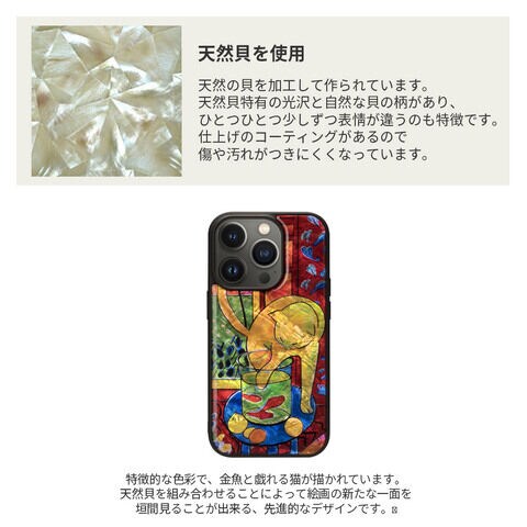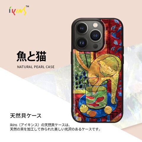 ikins(アイキンス) iPhone 12/12 Pro用 天然貝ケース(魚と猫) 名画シリーズ I19284I12P 【返品種別A】