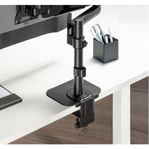 ディスプレイアームを机に取り付ける際に発生する、取り付け部のひずみやたわみを軽減。机への負担が軽減します。