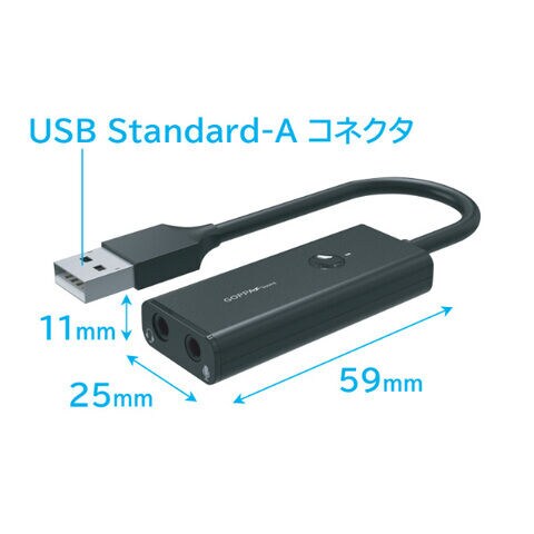 ミュートボタン搭載 96kHz/24bit再生対応小型・軽量 USBオーディオ変換アダプタ