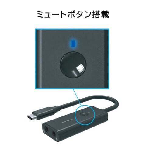 GOPPA|ゴッパ ミュートボタン搭載 USBオーディオ変換アダプタ (コネクター USB Type-C)ブラック GP-AUC2HM/B 【返品種別B】