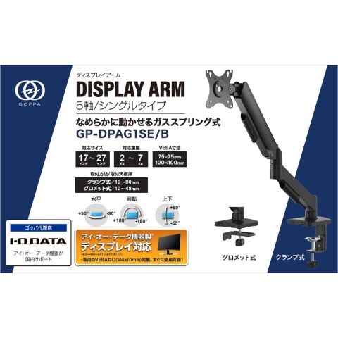 I/Oデータ 27型ディスプレイ対応 ガス式ディスプレイアーム(ブラック) GP-DPAG1SE/B 【返品種別A】