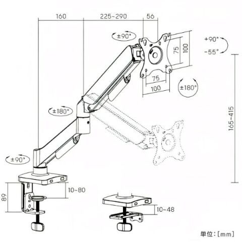 - 対応モニタ重量:2~7kg