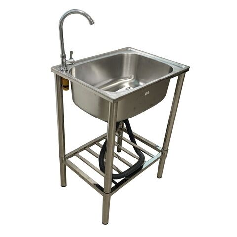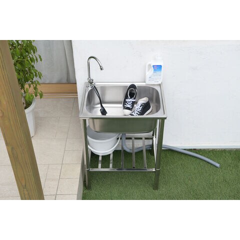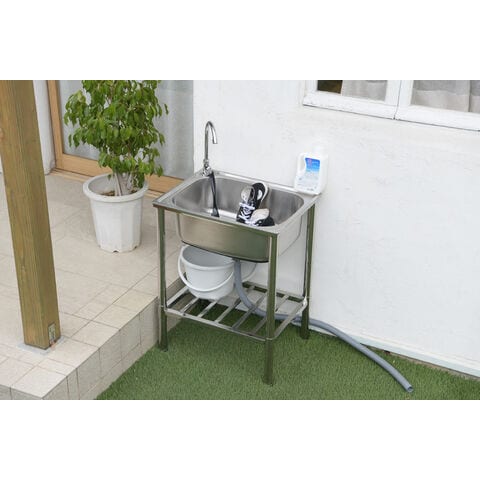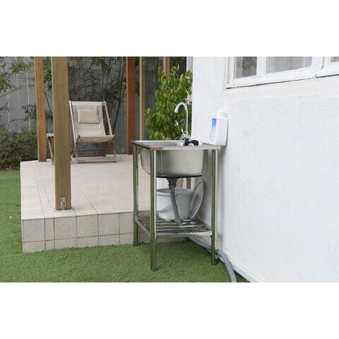 ◆蛇口裏に付属のホースアダプタで水栓とつなぐだけ! 簡単設置で使える蛇口付きの流し台です。