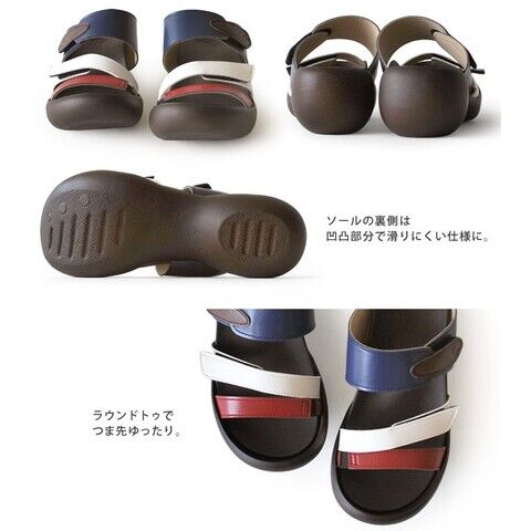 ◆丸いフォルムと3色のトリコロールカラーが夏らしくてお洒落のアクセントになるサンダル。