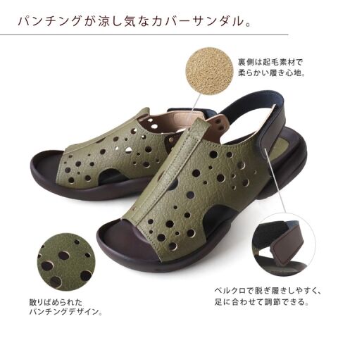 Re:getA レディース パンチングサンダル(ブラック・サイズ:L 24.0-24.5cm) リゲッタ R286-BLK-L 【返品種別A】