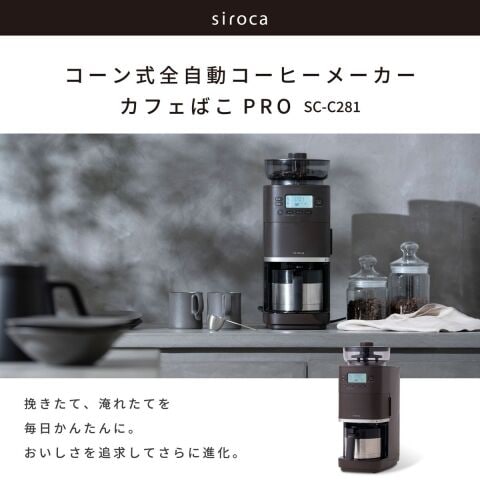 コーヒーメーカー シロカ コーン式全自動コーヒーメーカー ダークブラウン siroca カフェばこPRO SC-C281 【返品種別A】