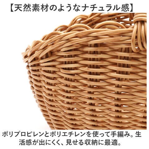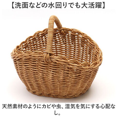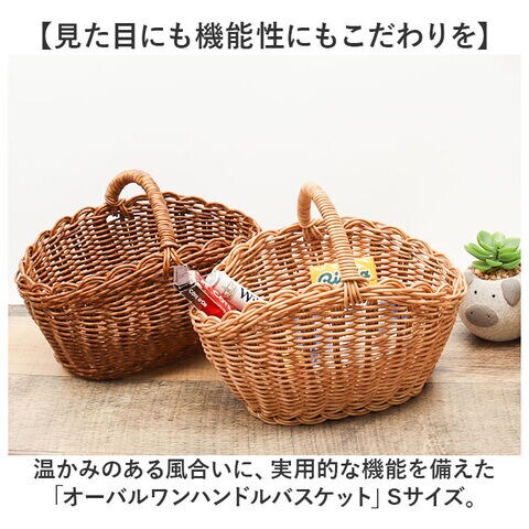 温かみのある風合いに、実用的な機能を備えた「オーバルワンハンドルバスケット」Sサイズ。