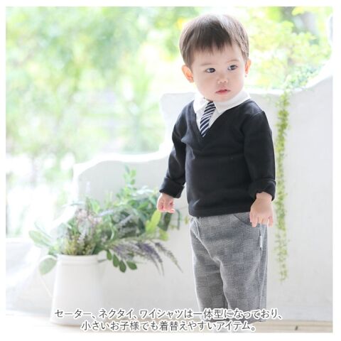 ◆セーター、ネクタイ、ワイシャツは一体型になっており、小さいお子様でも着替えやすいアイテム。